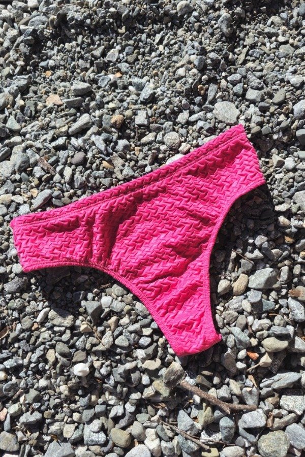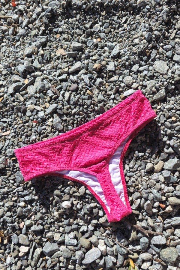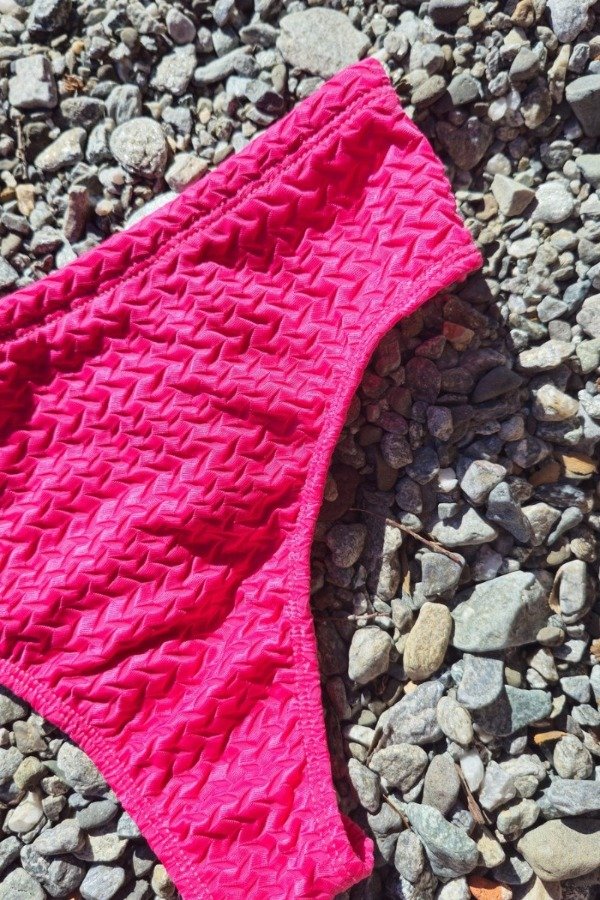 Bikini colaless de lycra con textura. Tiro alto y forrada en el interior.