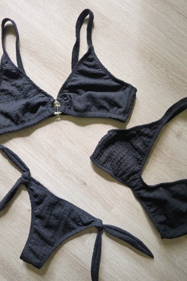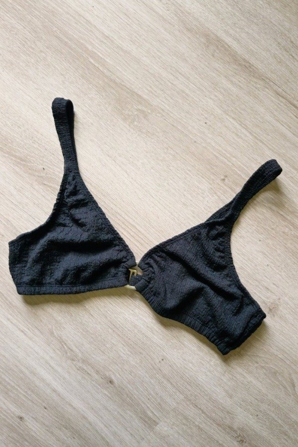 Corpiño de lycra con textura efecto bambula, forrada en el interior.